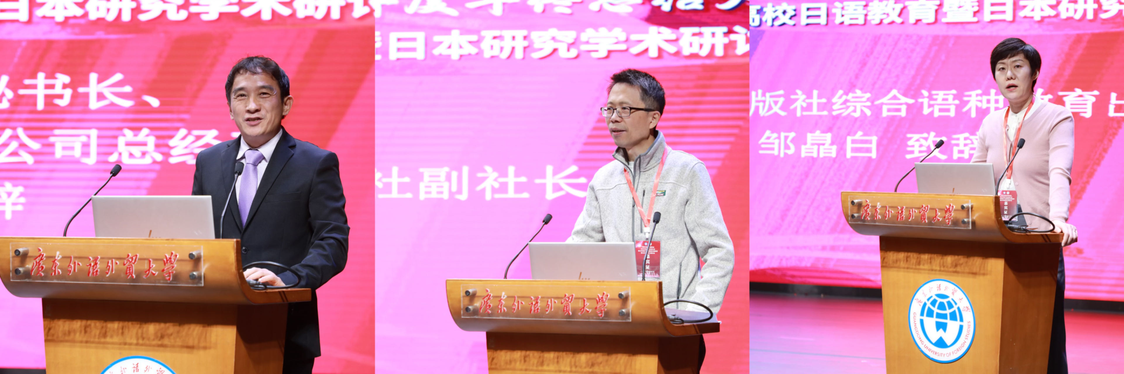 广东省翻译协会秘书长、广州市联普科技有限公司总经理陈定刚博士,上海外语教育出版社黄卫副社长,以及外语教学与研究出版社综合语种教育出版分社邹皛白社长分别上台致辞,预祝本次大会取得丰硕成果。开幕式由中国日语教学研究会常务副会长、伟德bv国际体育,BETVICTOR官网日语语言文化学院院长杨晓辉教授主持。
