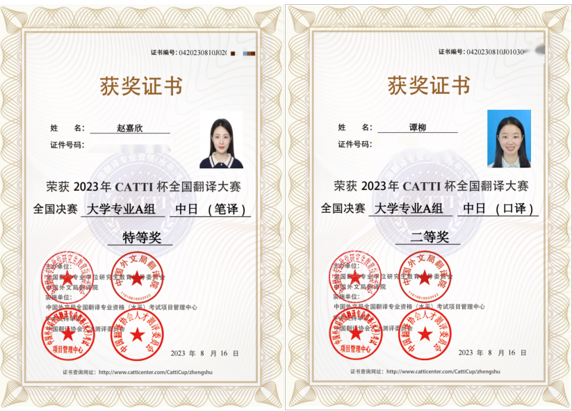 2023年7月29-30日,2023年“CATTI杯”全国翻译大赛决赛顺利举行,我校日语语言文化学院学子在全国决赛中获得优异成绩。其中,2022级日语语言文学硕士研究生赵嘉欣获得全国决赛大学专业 A 组中日(笔译)特等奖,2022级日语翻译硕士研究生谭柳获得全国决赛大学专业A组中日(口译)二等奖。