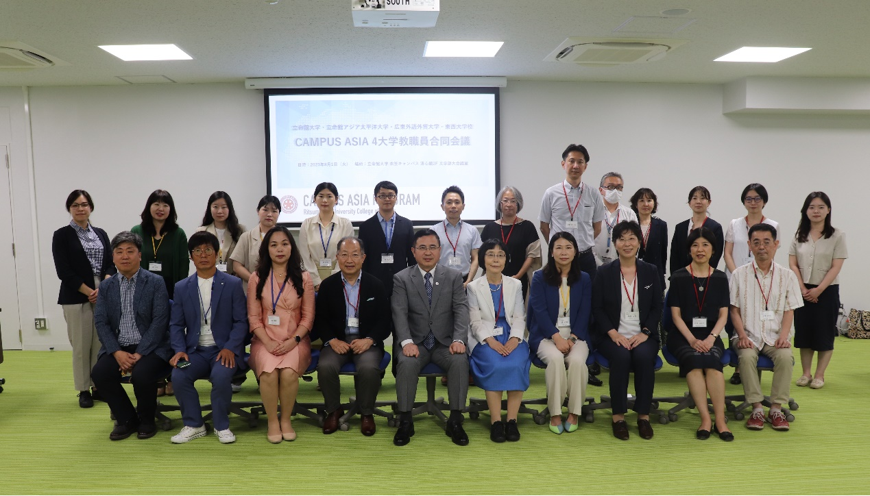 在立命馆大学召开的中日韩亚洲校园计划三国教职工共同会议上,三方就下一年度的运营方案,如留学生派遣、课程安排、实习实践活动、奖学金发放等事项进行了讨论,接着,就校友会运营、共同课程开发、联合学位授予等事项进行了协商。