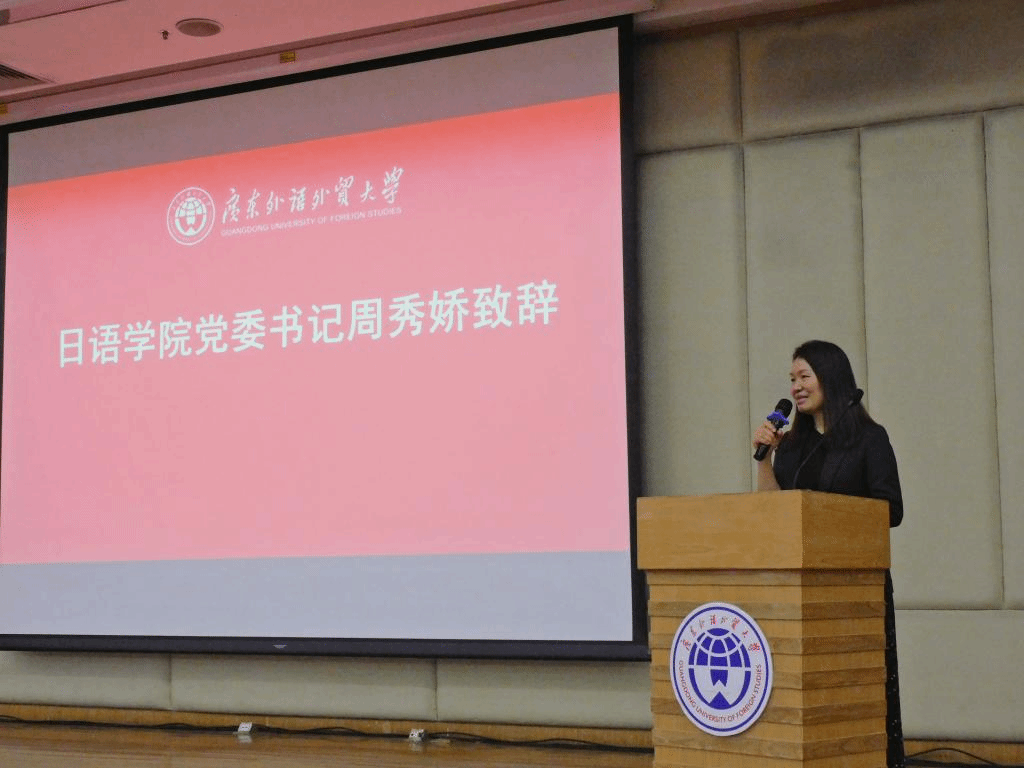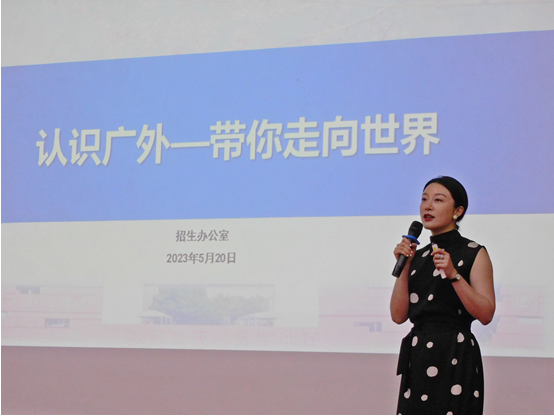 周秀娇书记在致辞中表示,广外鲜明的国际化办学特色始终贯穿于教育教学各环节,希望通过本次研学活动,同学们能够深入了解和感悟广外的独特魅力,并热忱欢迎惠东县高级中学的同学们报考广外。