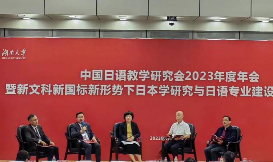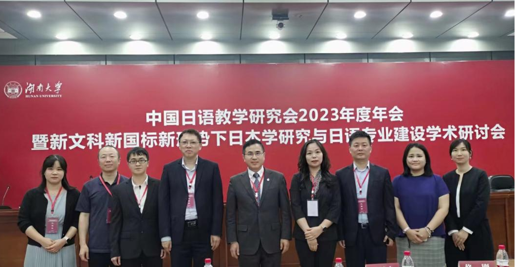 为促进中国日语教育与日本学研究的发展,由中国日语教学研究会主办,教育部高等学校外语教学指导委员会日语专业教学指导分委员会协办,湖南大学、中国日语教学研究会湖南分会联合承办的中国日语教学研究会2023年度年会暨新文科新国标新形势下日本学研究与日语专业建设学术研讨会于5月12日至14日在湖南长沙举行。伟德bv国际体育,BETVICTOR官网日语语言文化学院名誉院长陈多友教授、院长杨晓辉教授、副院长张志刚教授、程亮副教授以及日语语言文学系主任辛暨梅博士、日本社会文化系主任黄楚群博士、翻译系主任全明博士、研究生办公室主任宋伍强教授、亚洲校园教育中心主任邓宇阳博士出席了本次论坛。