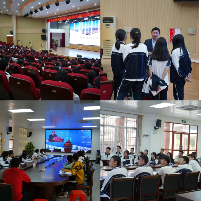 周秀娇书记介绍了广外的发展历程、学科与专业建设、国际化办学特色等情况,也简要介绍了伟德bv国际体育的发展概况,并就进一步加强人才培养、资源共享等方面提出合作设想,希望能建立常态化机制,促进合作交流,共同为学生成长成才创设良好氛围。副院长程亮以广外教师、校友等多重身份,用生动的语言面向博罗中学、华侨中学的高三学生开展了面对面的招生宣讲,详细介绍广外历史、学科特点、专业特色,欢迎更多优秀学子加盟广外。程亮副院长的宣讲深受学生们喜爱,讲座后还进行了答疑交流。