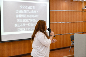 随后,2021级学生代表申美瑞及2022级新生代表骆蓉蓉进行发言。申美瑞同学从学生角度出发,深入探讨了如何平衡学业、社团工作与爱好,并衷心祝愿亚校的新生在大学生活中可以得到深刻的人生体验。新生代表骆蓉蓉则满怀初入大学的激动与憧憬,表达了从广外走向世界的远大志向,充分展现了2022级新人的朝气与活力。