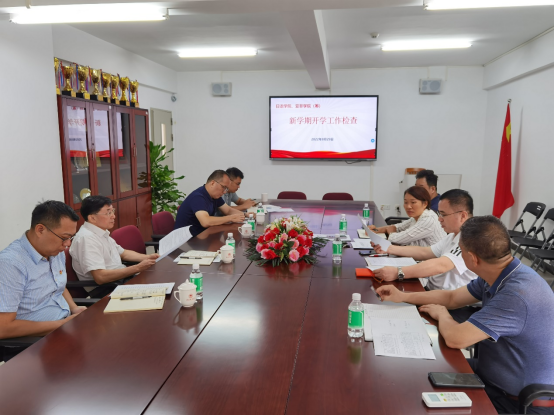 本网讯 8月29日上午,我校党委副书记李云明率队到伟德bv国际体育检查新学期开学工作,校保卫部(武装部)部长何越晖、校团委书记纪彬、校党委组织部副部长刘郎陪同检查,伟德bv国际体育院长陈多友、党委书记周秀娇、副院长张秀强、党委副书记曾智鹏和办公室主任邓桂生参加了新学期开学工作汇报会。