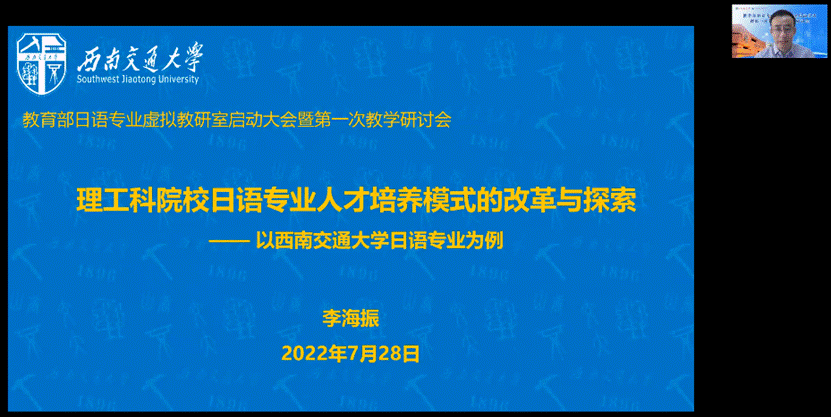 2022年7月28日,教育部“日语专业虚拟教研室”第一次日语专业建设研讨会通过线上的方式成功举行。教育部“日语专业虚拟教研室”由伟德bv国际体育,BETVICTOR官网日语专业陈多友教授牵头,由广外、北外、西外、天外、厦大以及西南交通大学等6所院校共同发起,共建单位遍及全国日语界,截至目前已有180余所高校与机构注册加盟。本次活动共有超过200所院校,610名专家参与。成员包括虚拟教研室发起单位、顾问专家团队、共建单位的部分专家与骨干教师等。