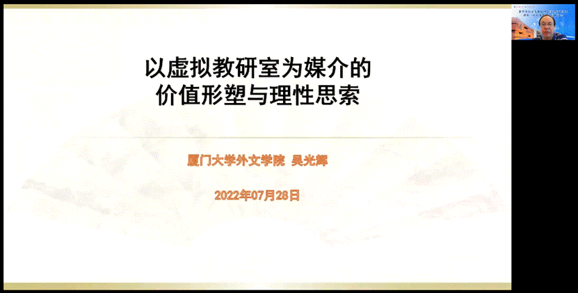 厦门大学吴光辉教授首先从元宇宙视域下的虚拟教研室这一全新的概念入手,阐释了日语专业虚拟教研室实现创新性“价值形塑”目标的策略与逻辑。他指出,日语专业虚拟教研室的“价值形塑”在于“空间跨越”、“时间往复”、“优化组合”、“本性自觉”这几大方面的协动与互为,发生乘数效应。他还立足“生态系统思维”、“对话共生”、“平台创新战略”、“动态地融入教育对象”等四个维度,对今后如何理性构建日语专业虚拟教研室的认识论与方法论等高度的问题进行了探讨。