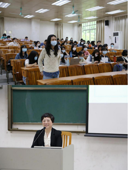 讲座过程中,连导师积极为同学们答疑解惑。在座的一些大一及大三同学谈及自身当前所面临的一些问题,如缺乏相应的职业信息来源、没有明确的职业规划、难以平衡工作实习与学习备考等。连导师一一回答了同学们提出来的问题,她借俞敏洪的创业经历、疫情之下的公司裁员及薇娅事件等鲜活事例,与大家分享自己的思考和感悟,同时向同学们介绍了从业者需要具备的职场核心能力与专业能力等。
