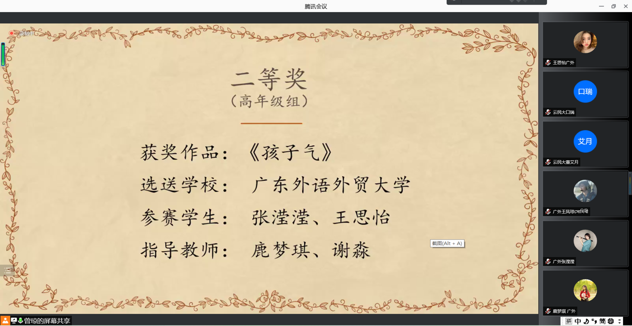 张滢滢、王思怡凭借《孩子气》配音片段斩获高年级组二等奖