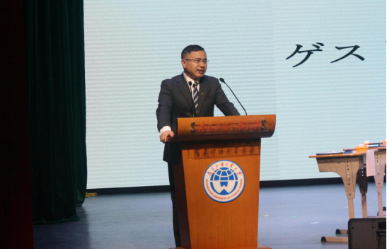 陈多友院长和石塚英树总领事先后致辞。陈多友院长对出席本次大赛的嘉宾表示了感谢,指出在新冠疫情的特殊背景下,举办本次日语知识大赛意义非凡,不仅有助于加深学生对日本的了解,同时对增进中日友好交流具有重大意义。石塚英树总领事在致辞中表示,希望本次大赛成为促进中日两国友好交流的契机,并表达出对本次大赛的期待。