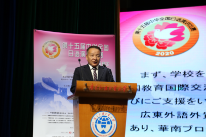 公布比赛结果前,由华南赛区预赛评委会主任天津外国语大学原校长、修刚教授对参赛选手们一天的演讲进行了点评。修刚教授首先对华南赛区参赛选手的日语水平和能力给与了高度评价和肯定,同时也指出因为今年采用全新的在线方式,选手们的比赛环境、设备条件等的准备工作还有待加强。