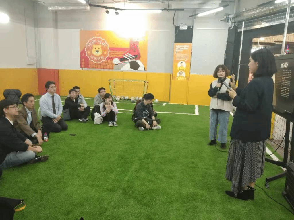 经过中午的休整,下午三点三十分,师生们前往位于广州市白云区永旺梦乐城的服装企业LEVVV的门店。了解了LEVVV品牌的商品以后来到了门店对面的小型室内足球训练场,围坐在一起聆听该企业的人力资源总监Sam女士介绍企业情况以及战略。LEVVV公司廖董事长等企业领导者分享了关于日本服装市场的考察成果以及提供了关于商品价值认知的新视角。活动全程MTI的同学进行翻译练习。