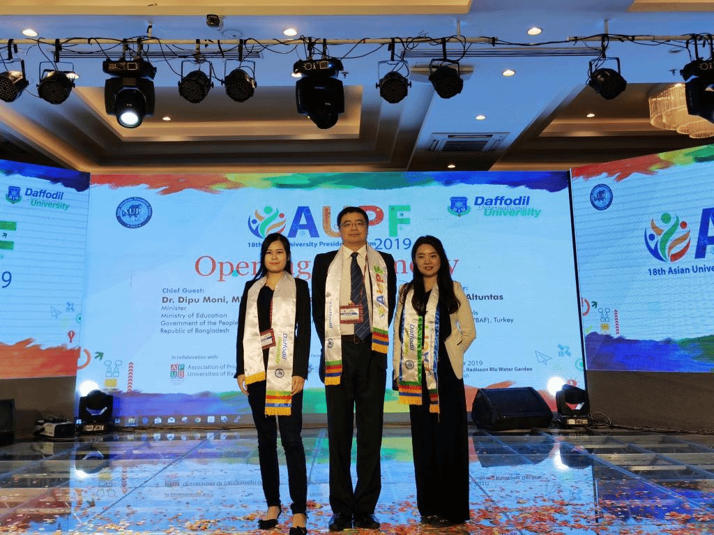 本网讯 第十八届亚洲大学校长论坛(Asian University Presidents Forum, AUPF)于11月22日至24日在孟加拉国水仙花国际大学举行,来自亚洲不同国家和地区36所大学的校长和相关领导共76人出席此次论坛。我校国际合作与交流处副处长陆露代表亚洲大学校长论坛常设秘书处出席论坛并在开幕式上致辞,留学生教育学院副院长刘明教授、日语语言文化学院、亚非语言文化学院(筹)孟加拉语专业教师鹿梦琪受邀陪同出席论坛。