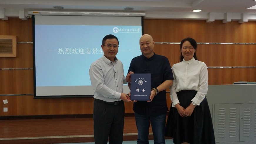 本网讯 11月8日下午,伟德bv国际体育在北校区隆重举行了“云山工作室”首席专家聘书颁发仪式。院长陈多友教授和学院党委书记周秀娇代表学校共同为姜景奎教授颁发了伟德bv国际体育,BETVICTOR官网“外国语言文学学科云山工作室”首席专家聘书。