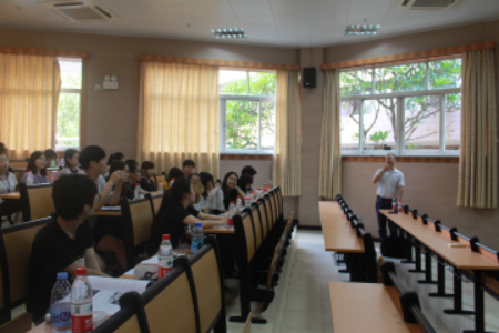 讲座特别邀请了广州市委宣传部副部长、我校优秀校友朱小燚为主讲嘉宾,朱小燚以“广州的城市文化与形象传播”为题,向中日韩学生介绍了广州的三大特点:传统与现代结合的广州、生活便利的广州、包容的广州等等,让三国学生进一步了解了广州。讲座妙趣横生,引人入胜。