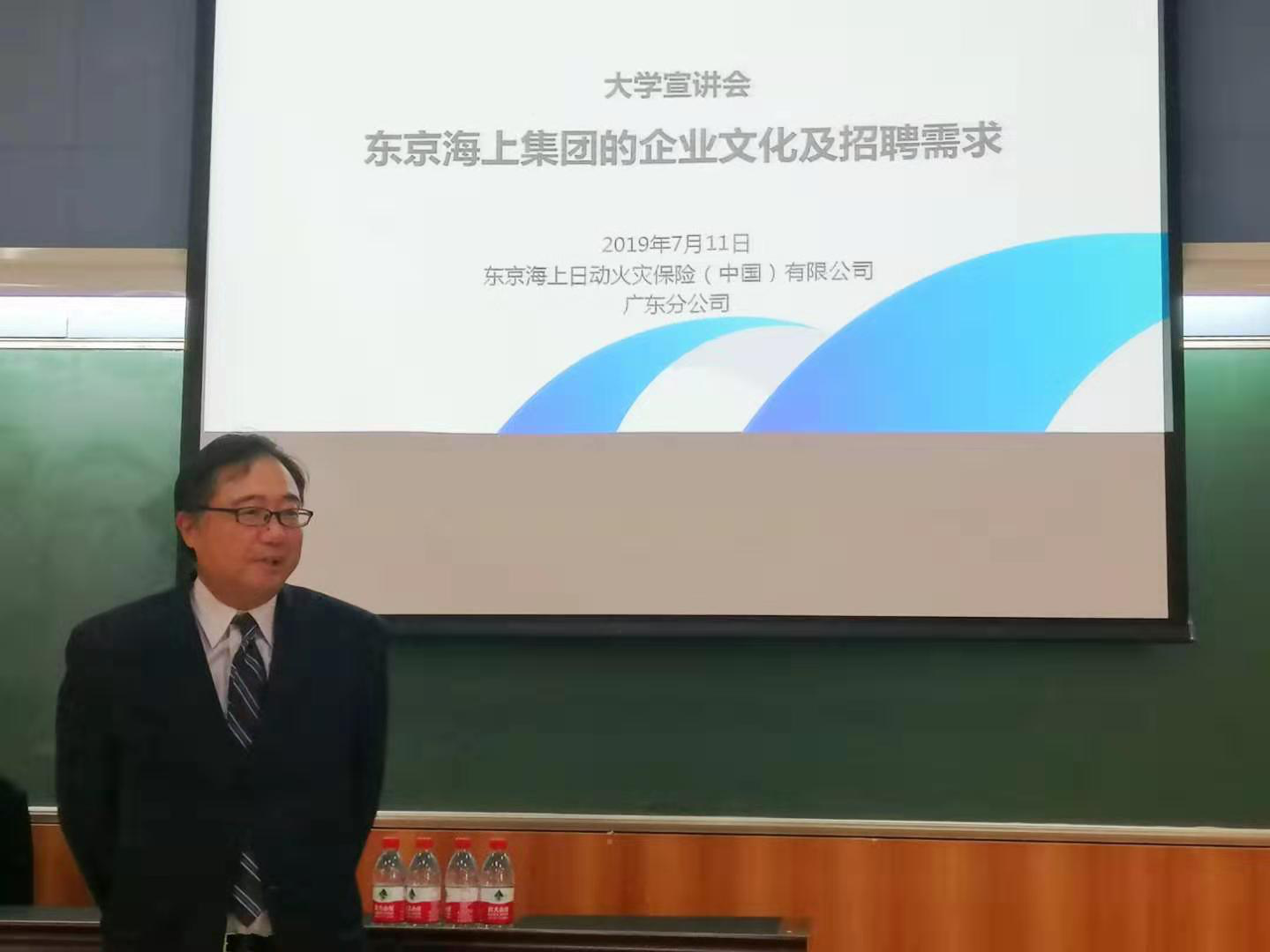 本网讯 7月11日下午,日企经理校园行巡回讲演于七教107顺利开展。出席本次宣讲会的嘉宾有:广州日本领事馆首席领事大圣寺利幸先生、领事井上爱子小姐、王小丽小姐;东京海上集团(广东)总经理石原徹弥先生,副总经理刘晓玲小姐,主管胡莹君小姐;广州日本工商会代表,普华永道(PWC)中天会计师事务所(广州)佐佐木博基先生、何思慧小姐;伟德bv国际体育,BETVICTOR官网伟德bv国际体育副院长杨晓辉教授、副院长张秀强教授、院长助理兼系主任张志刚副教授。本次宣讲会由程亮副教授主持。
