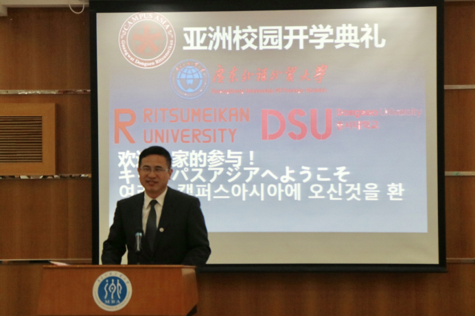 院长陈多友主持会议并致辞,期望同学们能博学、审问、慎思、明辨、笃行,并殷切寄语中日韩三国学生,在中日韩三国共同搭建的“亚洲校园”这个高水准的平台上,努力学习,学会生活,提升自己,在多文化碰撞中求同存异,为将来东北亚地区的和平与发展贡献自己的力量。