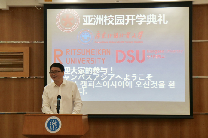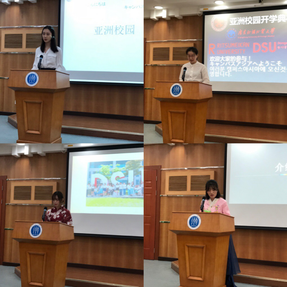 此外,广外17级学生代表、18级新生代表、日本立命馆大学、韩国东西大学学生代表先后分别用中日韩英四种语言发言。表达了自己参加亚洲校园项目的感受、分享了海外留学的学习与生活体验,也提出了对自己的要求。