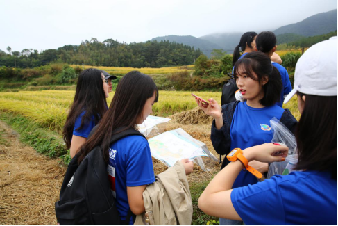 比赛过程中,亚洲校园的同学在带队老师的领导下齐心协力,借助定向工具奔走在原生态的田野间,穿越当年红色革命的传播之路,最终成功在规定时间内出色地完成任务到达终点。这既考验了她们的耐力、毅力和临场应变能力,也锻炼了中日韩三国学生相互沟通协作的能力,同时也让学生们了解了《寻乌调查》的背景和文化。