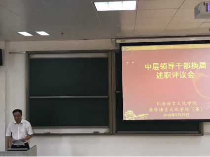 曾智鹏副书记首先进行干部述职,他对自己在原东语语言文化学院及日语语言文化学院、亚非语言文化学院的各项工作进行了总结,并从德、能、勤、绩、廉五个方面谈到了自己在学生工作方面取得的成果及存在的不足。康为茂书记接着进行工作述职,他首先表示对于加入日语语言文化学院、亚非语言文化学院(筹)这个团结、和谐的大家庭感到十分开心,并表示如能继续留在学院,将会不遗余力继续在岗位上为学院谋福祉,做到“定好位,站好台,做好事”。