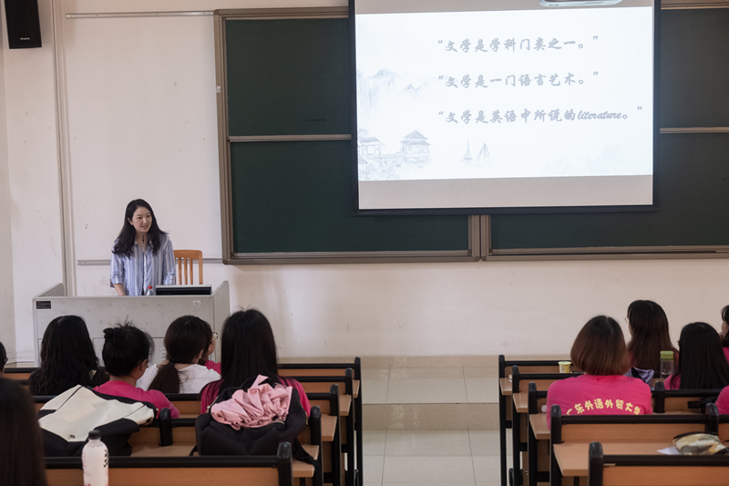 首先,徐磊教授以“何为文学”为题为各位营员作了精彩的讲座。讲座中徐老师分别从作者、读者、现实世界、媒介以及功能等五个方面入手,跟同学们分享了文学概念的构建,给大家带来了一场别开生面的文学体验。