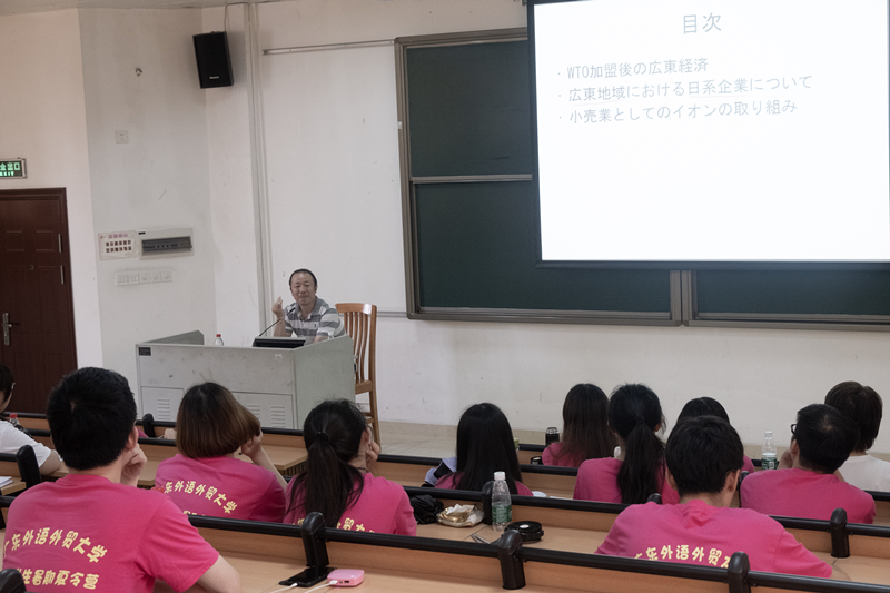 随后,宋伍强副教授以“加入WTO以后广东经济与日资流通零售企业的动向”为题举办了专题讲座。宋老师为营员们分析了加入WTO以后的广东经济情况,也介绍了广东地区日资企业的业态以及永旺的企业战略。两位老师以深入浅出的细致讲解、严谨求实的学者风范为大家带来了一场学术盛宴。