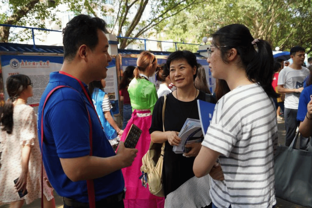 在整个开放日中,前来咨询的家长和学生络绎不绝。其中,就业方向及就业前景是学生及家长最关注的问题。许多家长、学生由于没有相关填报志愿的经验,对于大学举办开放日表示期待。一位独自前来咨询的学生说道:“家里没有人能够帮忙出谋划策,只能去大学的开放日咨询,幸亏有老师和师兄师姐给我介绍相关方面的情况。”有家长更是希望在场帮忙的志愿者同学能留下联系方式,等到填报志愿时能更多交流。在开放日中,伟德bv国际体育学生身着专业对象国的特色服饰与考生和家长交流,很好地宣传了语言对象国的文化。