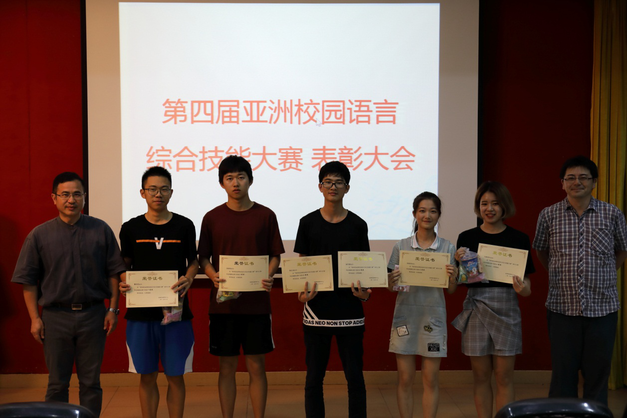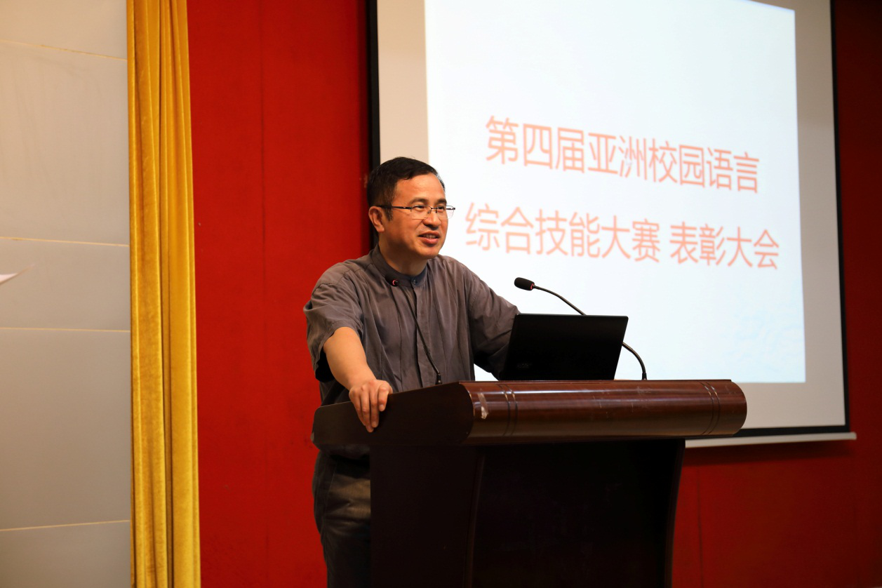 6月20日下午,亚洲校园教育中心在七教水上报告厅举行第四届亚洲校园语言综合技能大赛表彰大会。出席本次活动的有伟德bv国际体育、亚非学院(筹)院长陈多友教授、副院长兼亚洲校园教育中心主任杨晓辉教授、亚洲校园教育中心的部分专任教师、外教,以及中日韩亚洲校园的学生们。