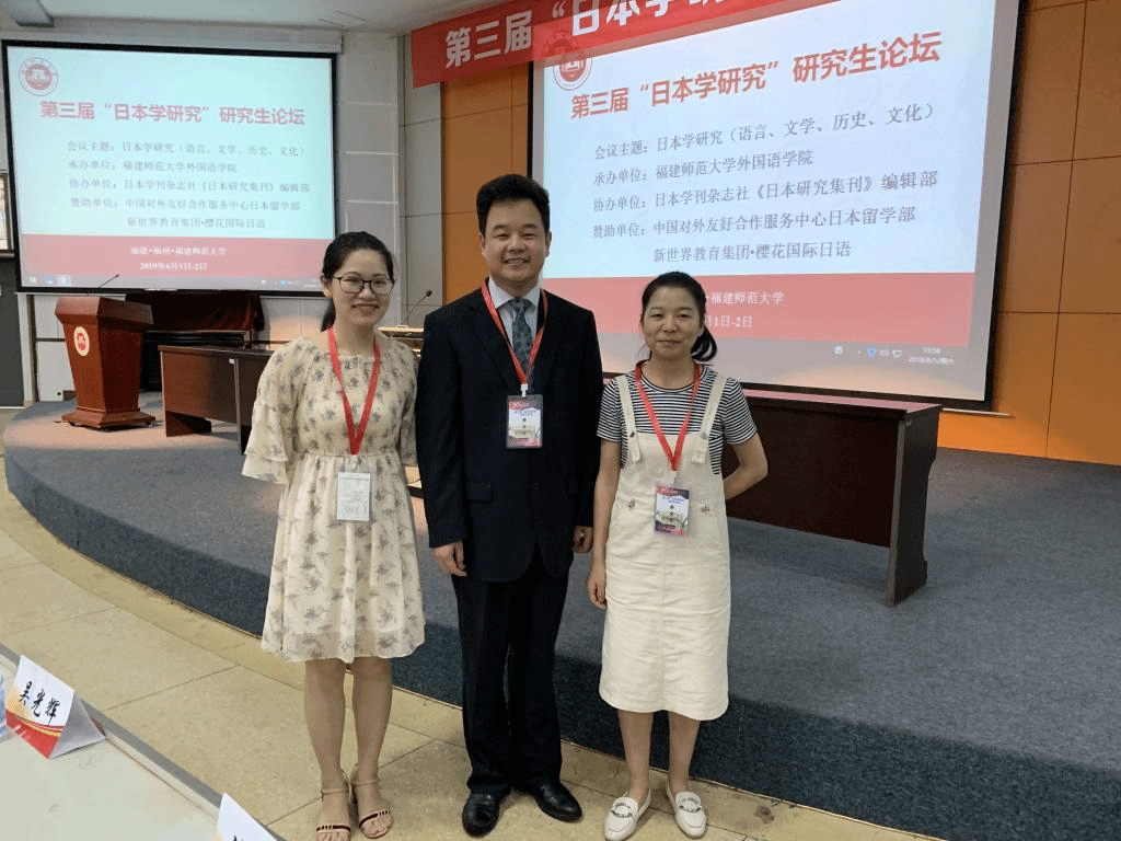 本网讯 2019年6月1日至2日,第三届“日本学研究”研究生论坛在福建师范大学召开,会议由福建师范大学外国语学院主办。来自全国12所高校的日本学研究领域的专家学者、博士、硕士研究生就日语语言学、日本文学、日本历史、日本文化等主题展开深入研讨。伟德bv国际体育副院长张秀强教授与两名硕士二年级研究生代表参加了此次会议。