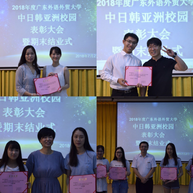 物换星移,广外中国师生即将与在广外度过了本学期流动校园课程的亚洲校园日韩留学生们话别。表彰大会最后,亚校老师们表达了对全体学生的美好祝愿,冀望同学们孜孜不倦,再接再厉,在即将到来的期末考试中取得良好成绩。