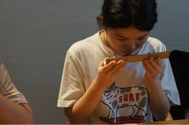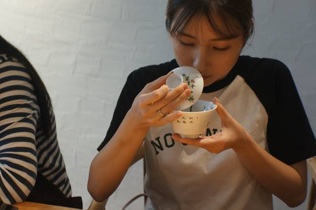 下午两点半,茶会准时开始,首先是一道白芽奇兰,置茶、注水、出汤、分汤…氛氲的兰花香气在空气中弥漫,学生们小心翼翼地将茶杯捧到嘴边饮啜起来,茶叶的芬芳瞬间就俘虏了大家的味蕾。紧接着第二道茶云南古树滇红,古树的韵致,玫瑰的香气,云南的山水,几杯下肚,日、韩同学连连赞叹,并表示中国茶文化博大精深,不同的茶带给人完全不同的感受。