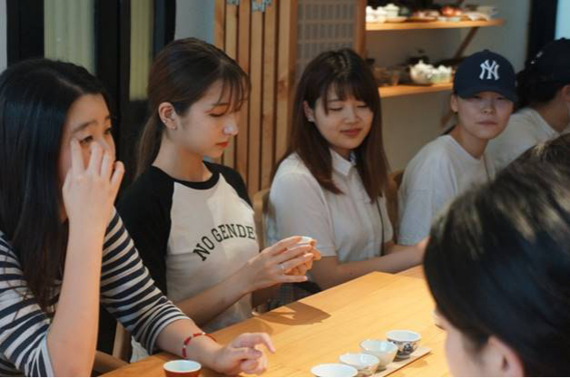 本网讯 2018 年 6 月 15 日,伟德bv国际体育,BETVICTOR官网日语语言文化学院中日韩亚洲校园教育中心二年级的日、韩同学在中心中国茶文化课主讲教师何元元老师的带领下,来到位于广州永庆坊的普安茶舍体验地道的中国茶文化。这是一场名为“茶的认知与觉知”的茶会,茶会主讲人为亚校教育中心特聘中国茶艺指导教师张沙女士。
