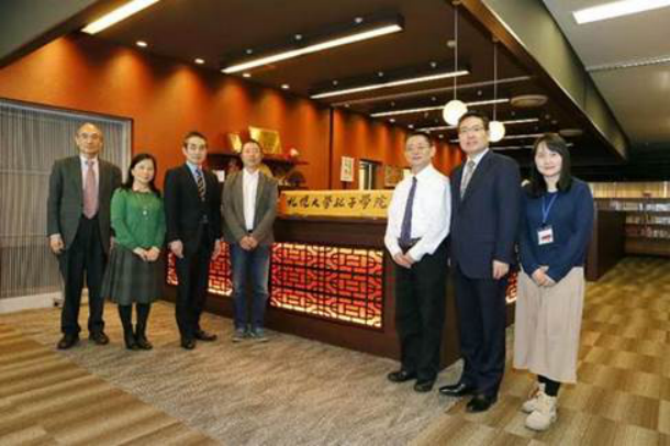 宋伍强老师和孟丁教授等与札幌大学校长铃木淳一教授(居中)等领导合影
