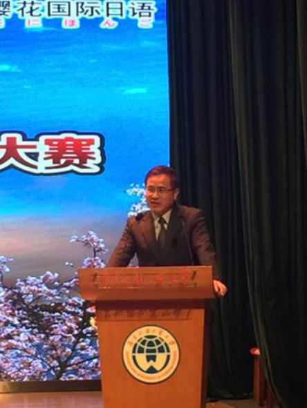 大赛开幕式上首先由周异夫教授代表主办方中国日语教学研究会致辞,接下来由陈多友院长代表承办方致辞。