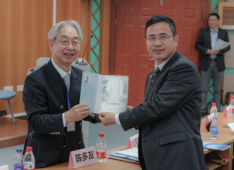 松冈教授向陈多友院长赠书