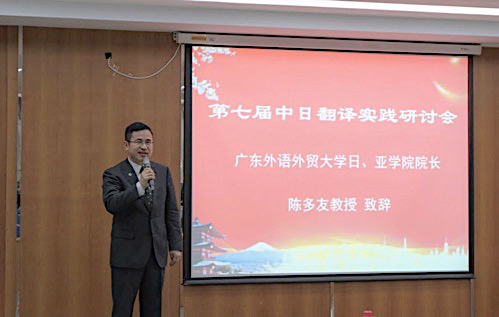 本网讯 4月12-14日,由中日翻译文化教育协会主办,我校日语语言文化学院、亚非语言文化学院(筹)承办的第七届中日翻译实践研讨会在我校成功举办。此次研讨会得到日本国际交流基金会、立思教育集团・立思外语学园、中国对外友好合作服务中心日本留学部等团体的大力赞助。来自中日两国各大高校的专家、教师及研究生参加了本次研讨会。日语语言文化学院亚非语言文化学院(筹)院长陈多友教授、副院长杨晓辉教授、张秀强教授,院长助理兼日语系主任张志刚副教授等出席了本次研讨会。日语专业研究生也列席参加。