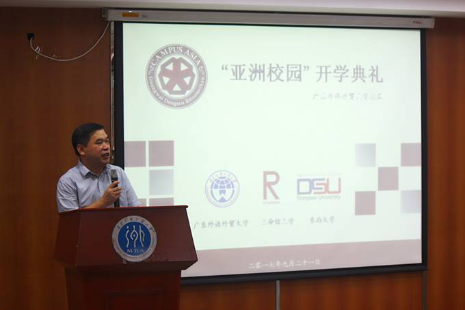 副校长焦方太、东语学院院长陈多友、国际交流与合作处副处长吴俊峰、亚洲校园实习基地赛特环保工程有限公司董事长郑永旭,东语学院相关院系领导、亚洲校园教职工、日韩留学生、亚洲校园16级学生、17级新生等出席了开学典礼。开学典礼由亚洲校园教育中心代主任杨晓辉主持。