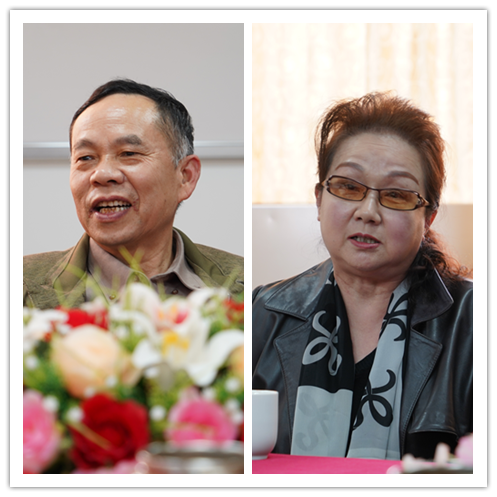 伟德bv国际体育退休教师代表招轩(左)、刘小珊(右)发言