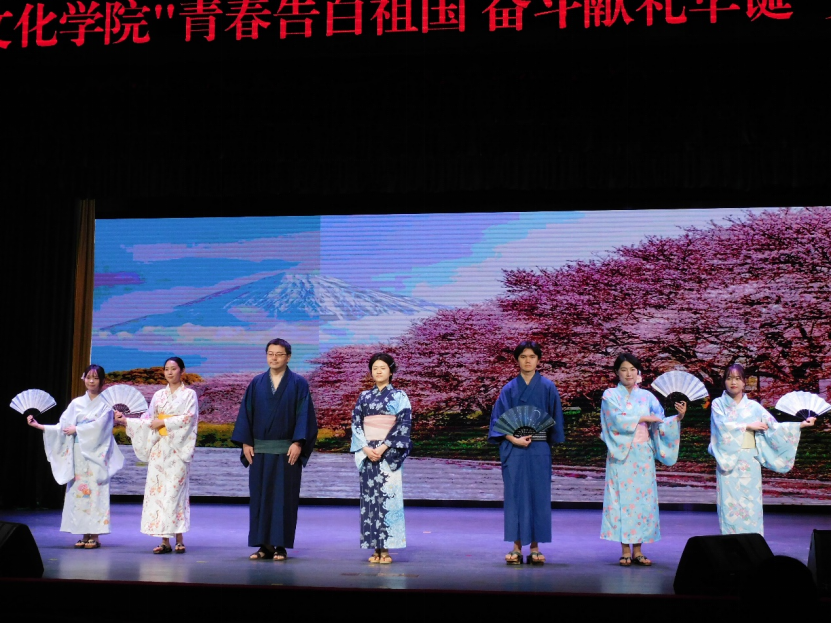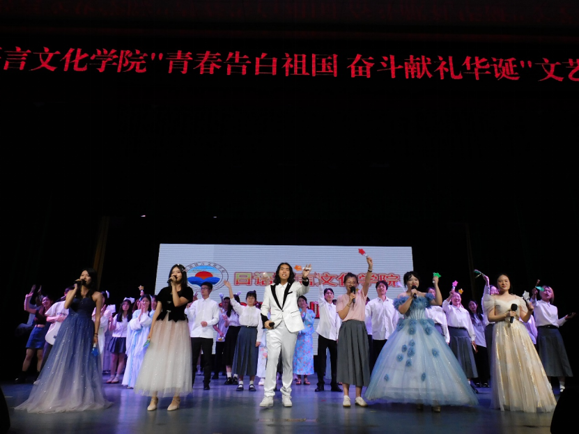 在晚会的最后,即将毕业的日语学子们深情歌唱着经典主题曲,让在场观众仿佛回到曾经的时光,再寻一边初心,重踏寻梦新征程。