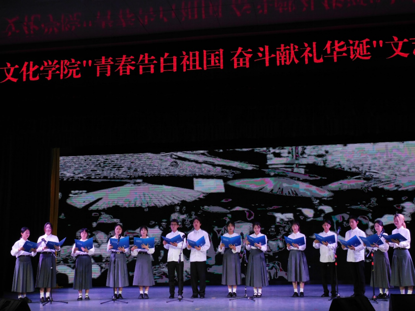 学院青春诗行队为大家献上了一首深情的诗朗诵。他们深情朗诵,充满了对祖国的热爱、对梦想的执着、对未来的憧憬。他们的声音,在报告厅内回荡,仿佛在向全世界宣告:中国新时代青年,已经准备好,踏上新的征程,为祖国、为梦想,奋斗不息!