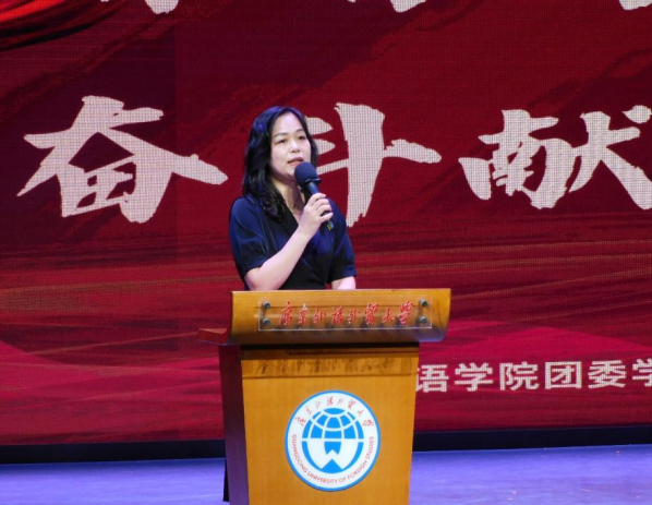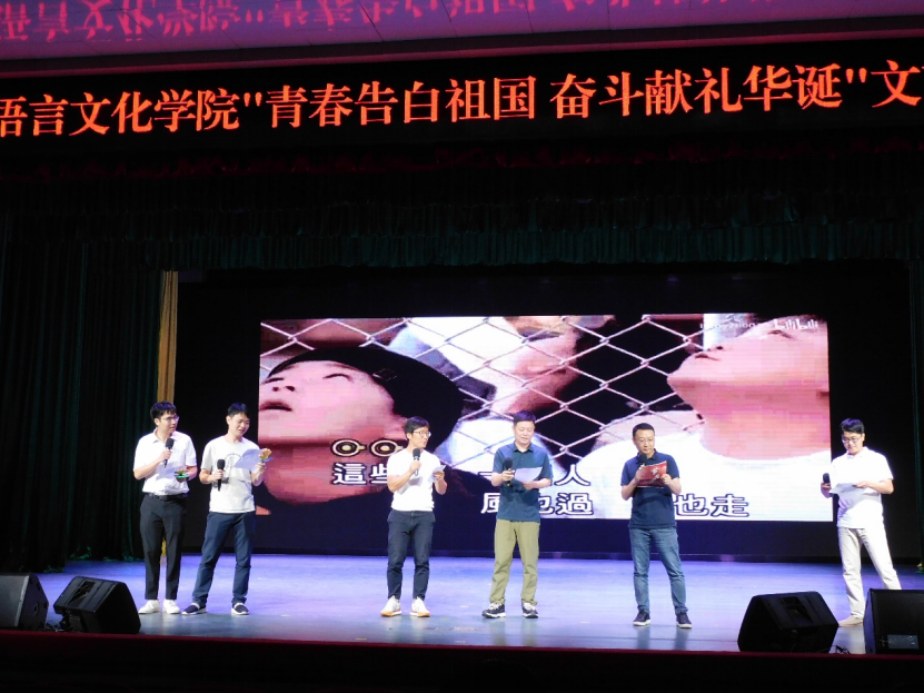 本网讯 为加强校园文化建设,丰富学生课余生活,5月10日晚,日语语言文化学院在白云山校区六教报告厅举办了“青春告白祖国,奋斗献礼华诞”文艺晚会。院长杨晓辉,副院长程亮,党委副书记连勇等学院老师出席本次活动。