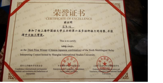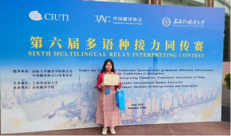 近日,由中国翻译协会(TAC)口译委员会、国际大学翻译学院联合会(CIUTI)、上海外国语大学主办的第六届多语种接力同传赛总决赛圆满落幕。来自全球知名院校的128名选手参加了总决赛的角逐。我校日语口译研究生梁采怡同学历经初赛、复赛层层选拔,以熟练的翻译技巧、准确的词汇运用、沉稳从容的临场表现,展现了广外学子出色的专业技能,最终荣获本次大赛三等奖。