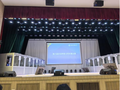 本次同传赛循例采用多语接力形式,以中文为接力语,进行阿拉伯语、法语、德语、日语、朝(韩)语、俄语、西班牙语与英语的同传接力,并重启全程线下接力同传模式。决赛共分八轮进行,参赛选手事先通过抽签的形式确定轮次、箱号和传译顺序。每轮比赛中选手们都要完成三项同传任务,即一次将外语译入中文,两次以其他选手译出的中文作为接力语再译入外语。每轮比赛时长45分钟,播放三个语种的视频材料,考验了选手的口译能力、应变能力、比赛心态和体力。最终,经过评委会的公正评审,各语种各评选出一等奖1名,二等奖2名,三等奖3名。