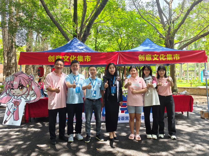 学校领导与伟德bv国际体育教职工在摊位前合影