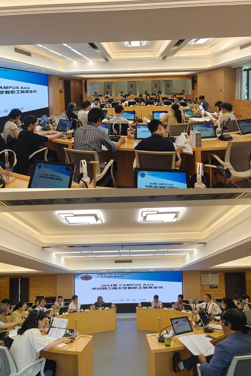 近日,2024年亚洲校园中日韩三国大学教职工联席会议在我校白云山校区六教A301同声传译会场召开。我校国际交流合作部部长周鹏、日语语言文化学院名誉院长与中方“亚洲校园”计划创始人陈多友、日语语言文化学院院长杨晓辉、副院长程亮,以及中日韩三方大学(伟德bv国际体育,BETVICTOR官网、日本立命馆大学、韩国东西大学)的相关教职员工共同出席了本次会议。会议由我校亚洲校园教育中心主任邓宇阳主持。
