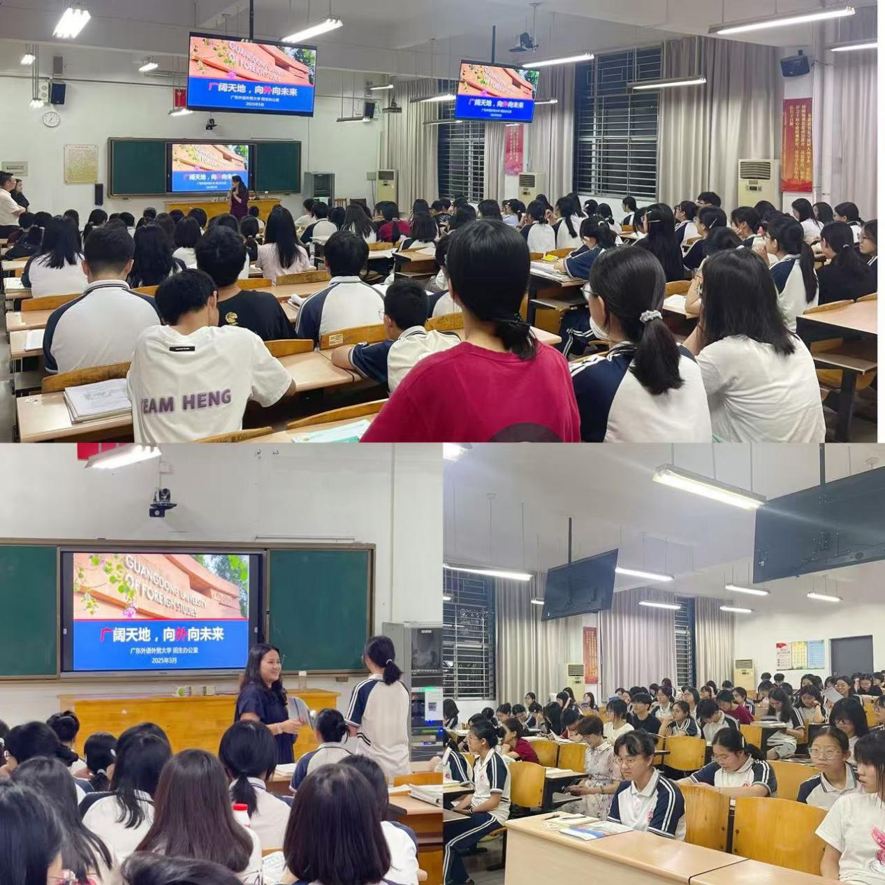 周秀娇一行与博罗中学和惠州中学的校领导、高三年级长、班主任座谈交流,介绍广外办学特色。黄楚群博士面向博罗中学高三学子开展了专场宣讲会。她以生动的语言介绍了广外的办学历史、专业设置和就业前景。在高考冲刺的关键时刻,黄楚群老师还为学子们加油鼓劲,现场气氛热烈。宣讲结束后,许多学生纷纷表示对广外充满向往。