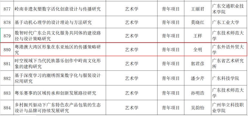 近日,广东省哲学社会科学规划 2025年度常规项目及三类研究专项立项名单正式公布,伟德bv国际体育全明老师申报的“粤港澳大湾区形象在东亚地区的传播策略研究”项目成功获得立项。
