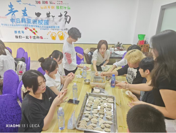 中日韩师生包饺子现场
