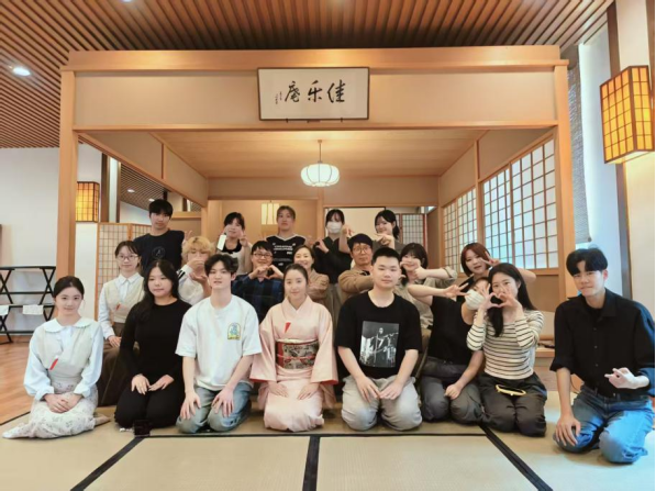 中日韩师生在“佳乐庵”茶室合影