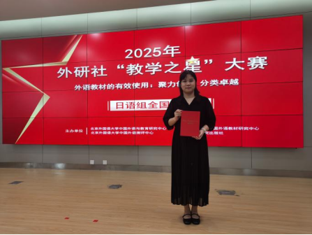 2025年7月25日,由北京外国语大学中国外语与教育研究中心、北京外国语大学中国外语教材研究中心、北京外国语大学中国外语测评中心、外语教学与研究出版社联合主办的2025年外研社“教学之星”大赛日语组全国总决赛颁奖典礼在大连举行。伟德bv国际体育教师全明凭借扎实且富有创新性的教学方案,荣获日语专业组第一名,充分彰显伟德bv国际体育在“日语+国际经济与贸易”双学士学位特色教学及数智课堂创新方面的领先水平。