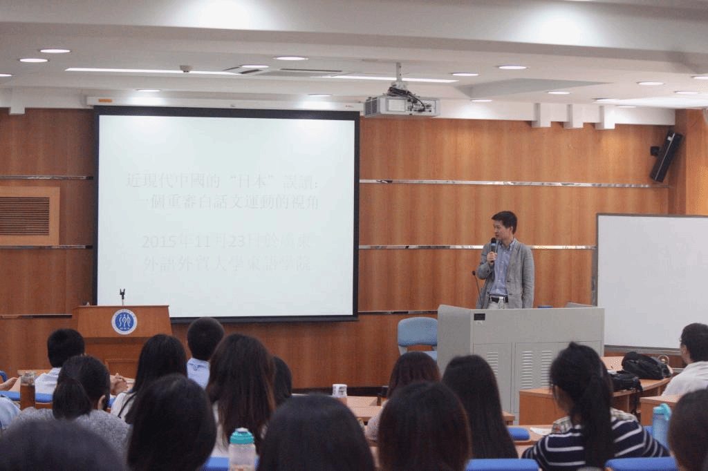 本网讯 11月23日下午,以“近现代中国的‘日本’误读:一个重审中国白话文运动的视角”为题的讲座在MBA九教丝纺讲堂举行。讲座由东京大学综合文化研究科副教授林少阳老师主讲,并由经贸教研室主任林彦樱老师主持。出席本次讲座的还有李志颖、崔勇、李惠清、张陵等各位老师。